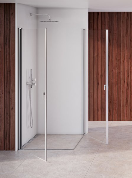 Combinez deux portes pour obtenir une cabine de douche de forme carrée ou rectangulaire dont le plan correspondra parfaitement à vos besoins et dont l'accès pourra avoir une largeur allant jusqu'à 125 cm. Vous pouvez combiner ces portes de douche à un élément fixe. La version rectangulaire vous permet de bénéficier d'un plus grand confort. Ne pourriez-vous pas par exemple installer une cabine de 80 x 100 au lieu d'une 90 x 90 ? L'espace utilisé sera le même, mais la conception vous permettra de beaucoup mieux profiter de votre douche.