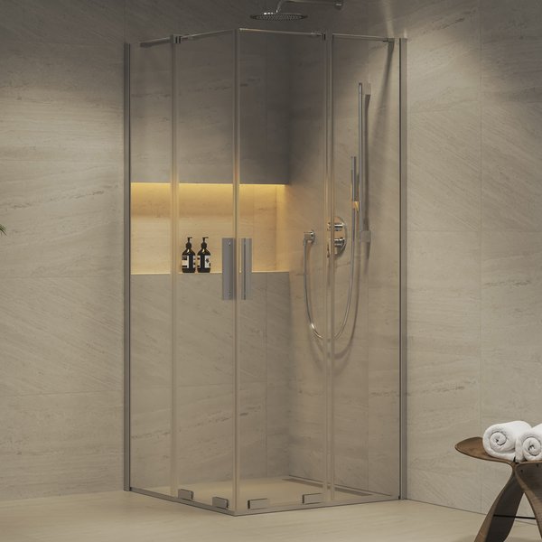 La cabine de douche se compose de deux éléments fixes et de deux éléments coulissants, qui glissent facilement grâce à des roulettes intégrées dans un rail inférieur. Elle s’installe dans un angle carrelé de la salle de bains, directement sur le sol avec gouttière intégrée ou siphon de sol, ou bien sur un receveur de douche Ravak Angela, Perseus Pro, Perseus Pro Flat ou Perseus Pro Chrome. Les barres de fixation sont incluses dans le kit de porte.