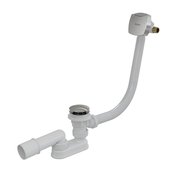 Les ensembles de vidange de baignoire avec remplissage à trop-plein en longueurs de 570 mm ou 800 mm sont disponibles avec une bonde à molette bowden ou en appuyant sur le bouchon Click-Clack. Le produit comprend également un siphon (bouchon anti-odeur), un bouchon de siphon en métal et une tête de remplissage en plastique. La commande de vidange est carrée avec une finition chromée.