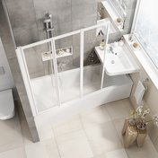 Même une petite salle de bains peut vous offrir assez d'espace à exploiter. Le lavabo BeHappy obéit aussi à cette idée et il peut donc être facilement installé non seulement dans un coin de la salle de bains, mais aussi au-dessus de la baignoire du même nom, au niveau des pieds.