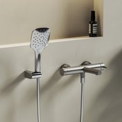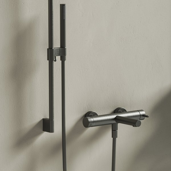 Le mitigeur mural de baignoire Nox convient à chaque baignoire placée près du mur. La collection de mitigeurs entièrement en acier inoxydable Nox est un hommage à l’architecture et à l’artisanat de précision, à un prix abordable. La texture délicate des éléments de commande apporte au mitigeur une élégance industrielle, tandis que l’effet métallique mat des surfaces brossées atténue les reflets et crée une sensation de chaleur, de naturel et de luxe. Il est disponible en trois couleurs: cacier inoxydable brossé, noir mat ou graphite brossé.