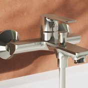 Le mitigeur mural de baignoire Solar convient à chaque baignoire placée près du mur. Le contrôle sensible du levier du mitigeur permet une régulation parfaite de l’écoulement et de la température de l'eau. L’inverseur de haute qualité avec verrouillage garantit une commutation confortable du débit d'eau entre le remplissage de la baignoire et la douche, qui ne s'arrête pas, même lorsque la pression de l'eau change.