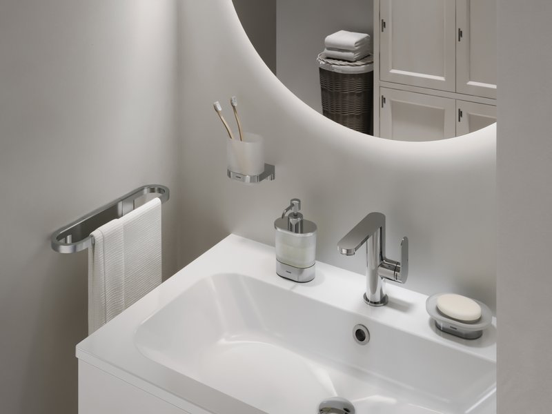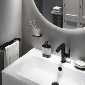 Le porte-verre en en design Chrome II est très pratique pour y mettre vos brosses à dents, votre dentifrice ou autres choses dont vous avez souvent besoin à portée de la main.  Le produit est disponible en chrome et noir mat.