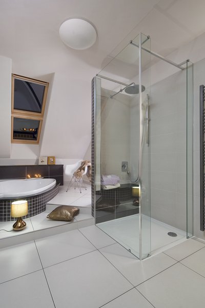 La mansarde d'une maison de campagne datant de plus de 300 ans cachait un grand espace de 18 m2 qui a finalement été transformé en salle de bains dont l'histoire et les dimensions sortent des sentiers battus. Le propriétaire a tout d'abord choisi lui-même la baignoire LoveStory de la marque RAVAK pour sa taille, pour la possibilité de prendre un bain à deux et pour ses formes pleines d'émotions. Peu de temps après, il s'est inscrit à un concours du magazine "Pěkné bydlení" qui portait sur la transformation de salles de bains avec les marques RAVAK et RAKO. Et il a gagné. Nous avons ainsi associé sa baignoire LoveStory à une cabine de douche Walk-In fabriquée sur mesures et équipée d'un receveur Chrome en marbre coulé - une salle de bains originale a ainsi pu voir le jour.