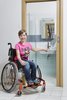 Pour que la salle de bains donne une impression d'ensemble globale, nous avons sélectionné le lavabo et les robinets dans le même concept. Le lavabo Chrome est fabriqué en marbre coulé, il a une forme simple et épurée, il offre un grand espace de lavage et suffisamment de surfaces de rangement. Au lieu d'y installer un robinet de lavabo classique, la famille Langer a eu l'excellente idée d'y installer un haut robinet d'évier qui fait également partie du concept Chrome. Ce robinet offre ainsi suffisamment de place pour se laver les mains et Tereza peut l'utiliser même lorsqu'elle est assise dans son fauteuil. C'est aussi la raison pour laquelle nous n'avons pas proposé d'armoire sous le lavabo car cette dernière aurait empêché Tereza d'accéder au lavabo.