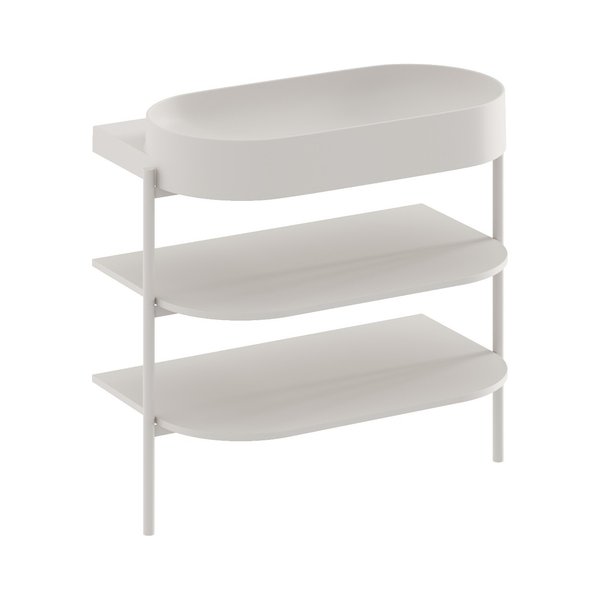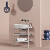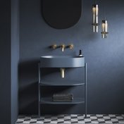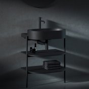 Le meuble ouvert Yard est une structure métallique stable complétée de deux étagères. La conception métallique à étagères CS Yard est spécialement conçue pour les vasques design Yard 40 / 60 / 80. Cette conception est dotée d’un trou pour le siphon et de pieds à bloquer. Les étagères copient parfaitement la forme de la vasque et proposent un espace de rangement suffisamment grand. La partie haute des pieds métalliques dépasse légèrement, offrant une solution parfaite pour suspendre une serviette de toilette.